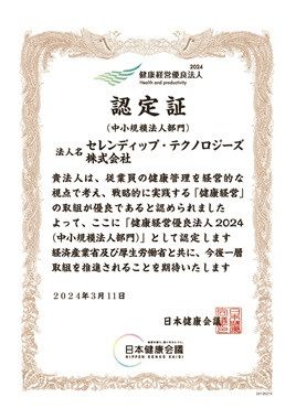 弊社は、経済産業省によって「健康経営優良法人2024」として認定されましたことをお知らせいたします。